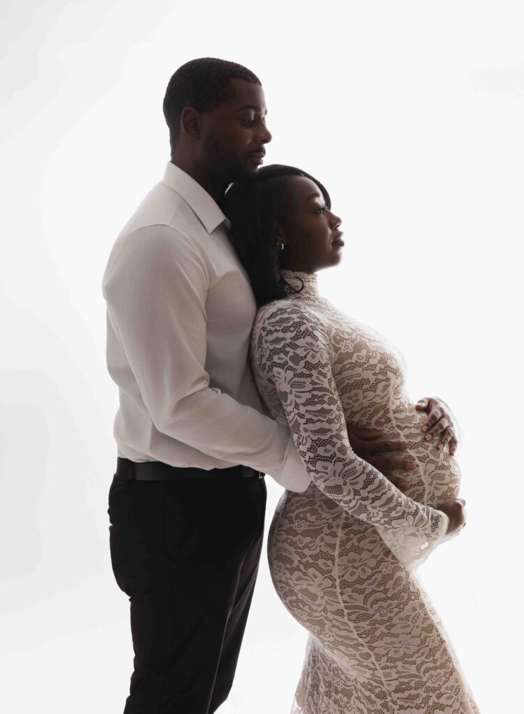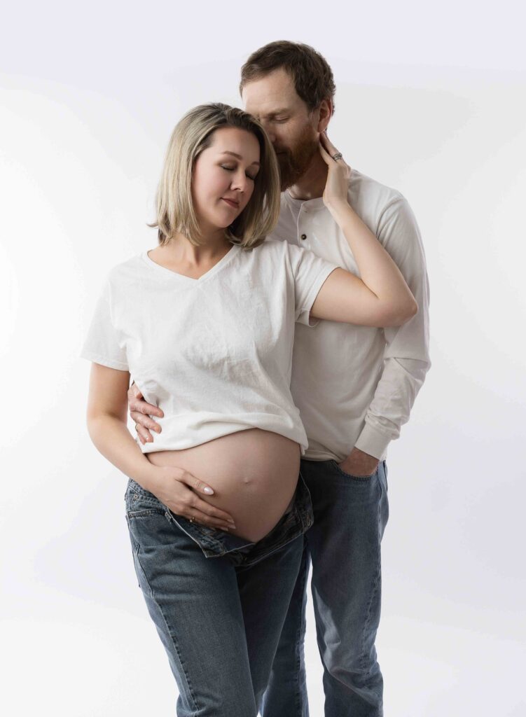 Many moms choose a couples-focused session or a more refined, boudoir-inspired approach that highlights connection and strength. These sessions celebrate both your changing body and the bond you share with your partner—without feeling staged or awkward.
